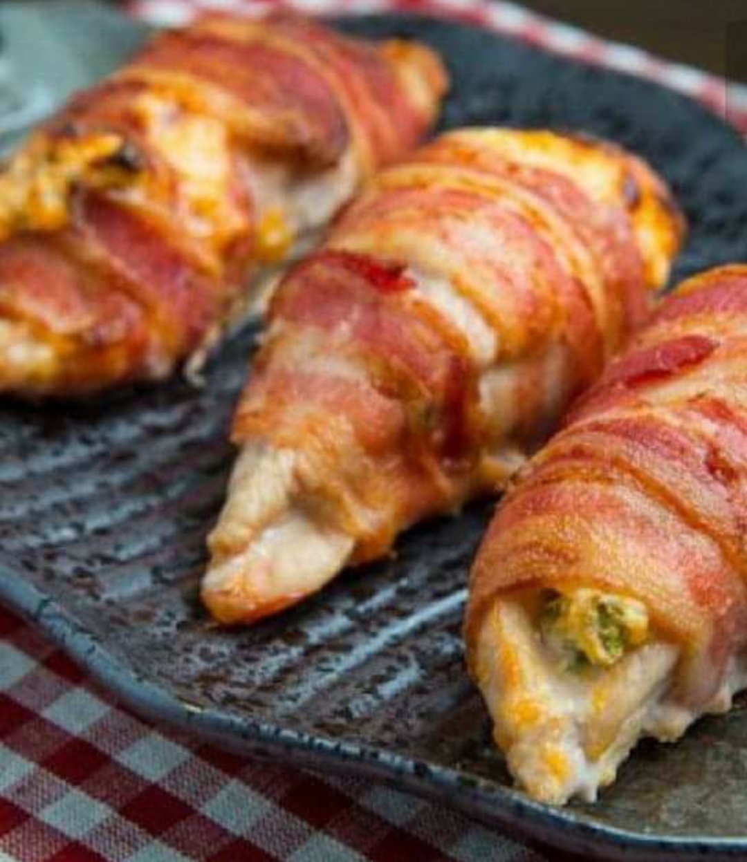 Delicioso chile caribe relleno de queso Philadelphia y amarillo envuelto en tocino.