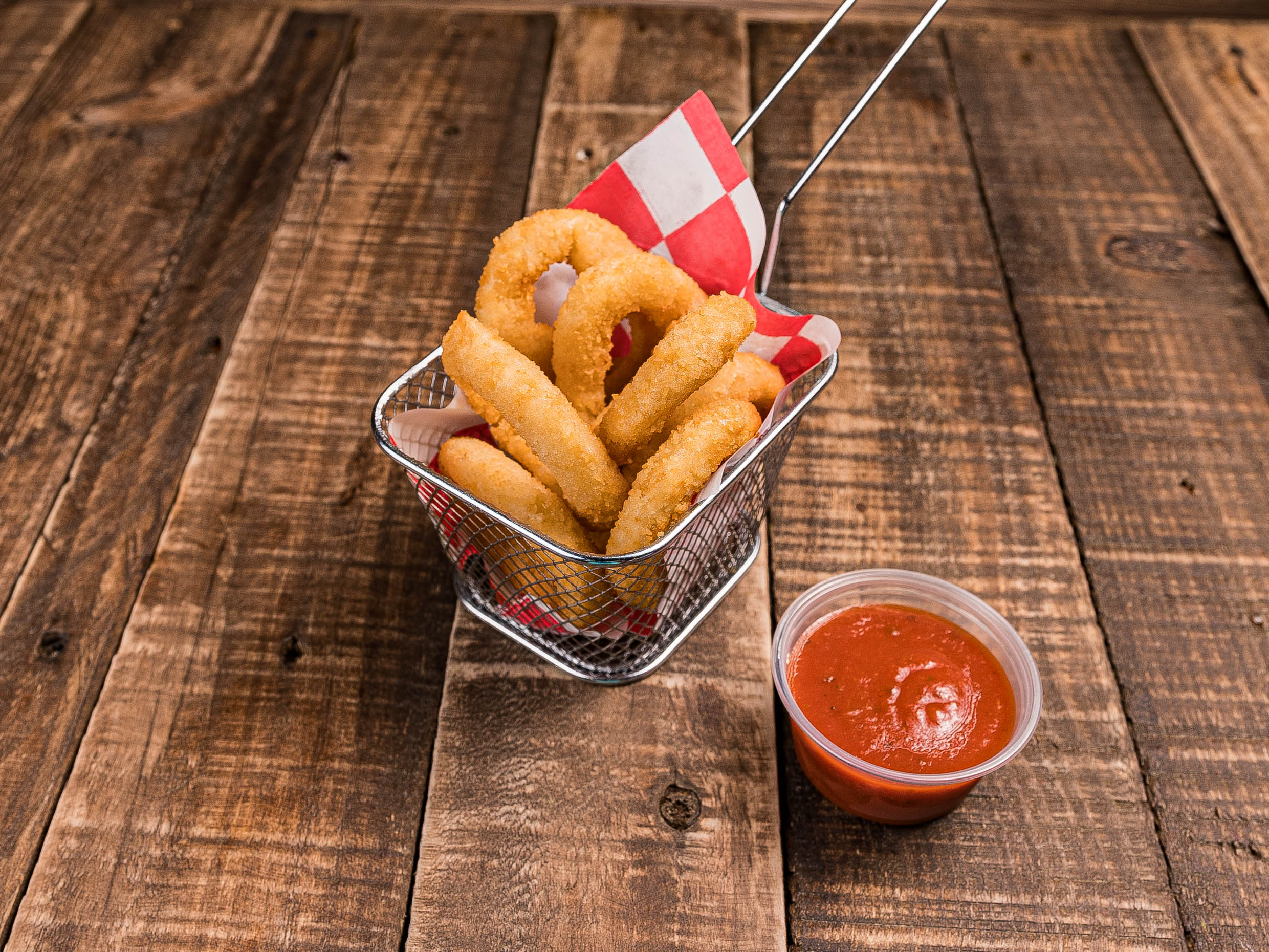 8 pzas de crujiente aro de cebolla, acompañados con salsa marinara.