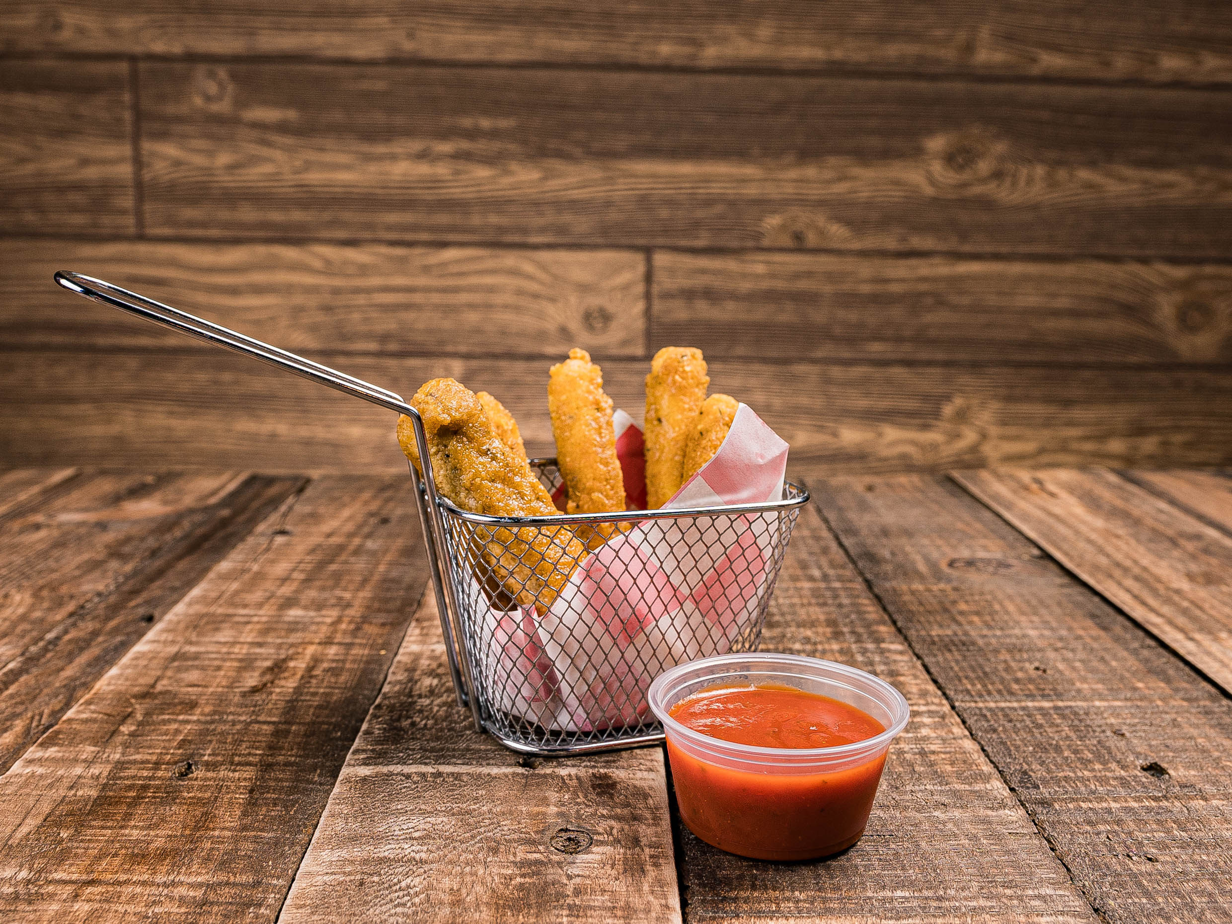 6 crujientes barritas de queso mozzarella con salsa marinara