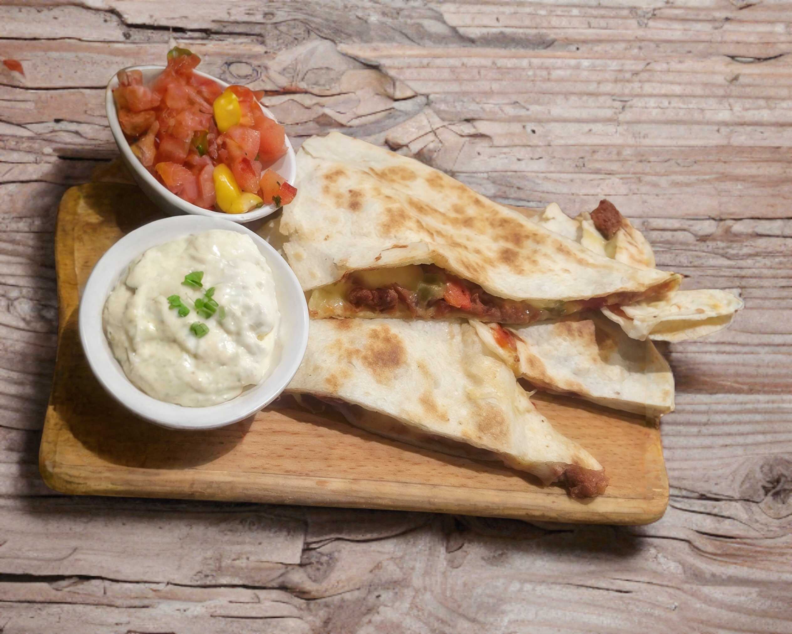 2 Tortillas de Harina Chicas, Jamon , Queso Asadero, Queso Amarillo, Trompo, Áconpañado con Papa Galeana.