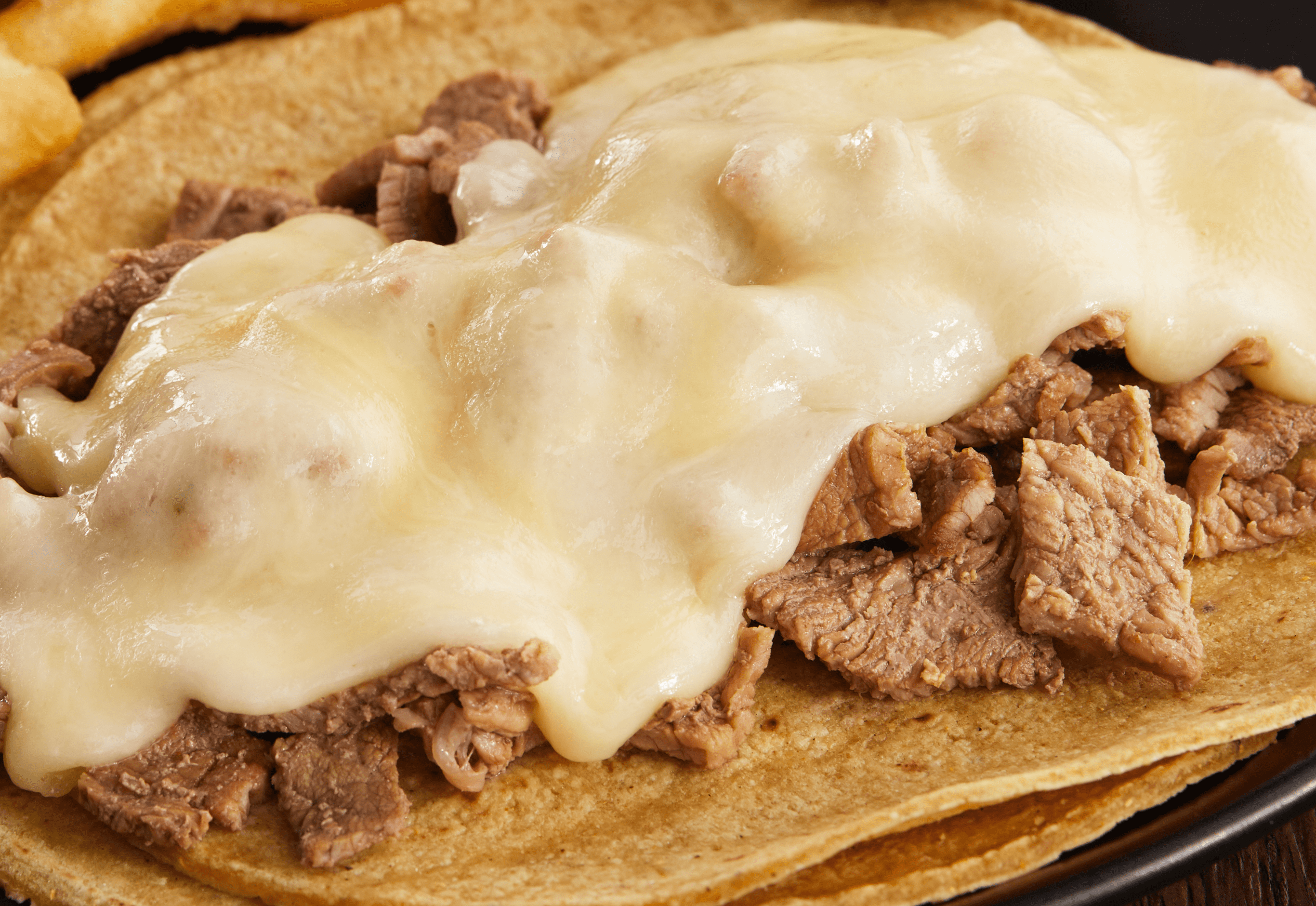 Taco de tortilla de harina con carne de Bistec, Queso.