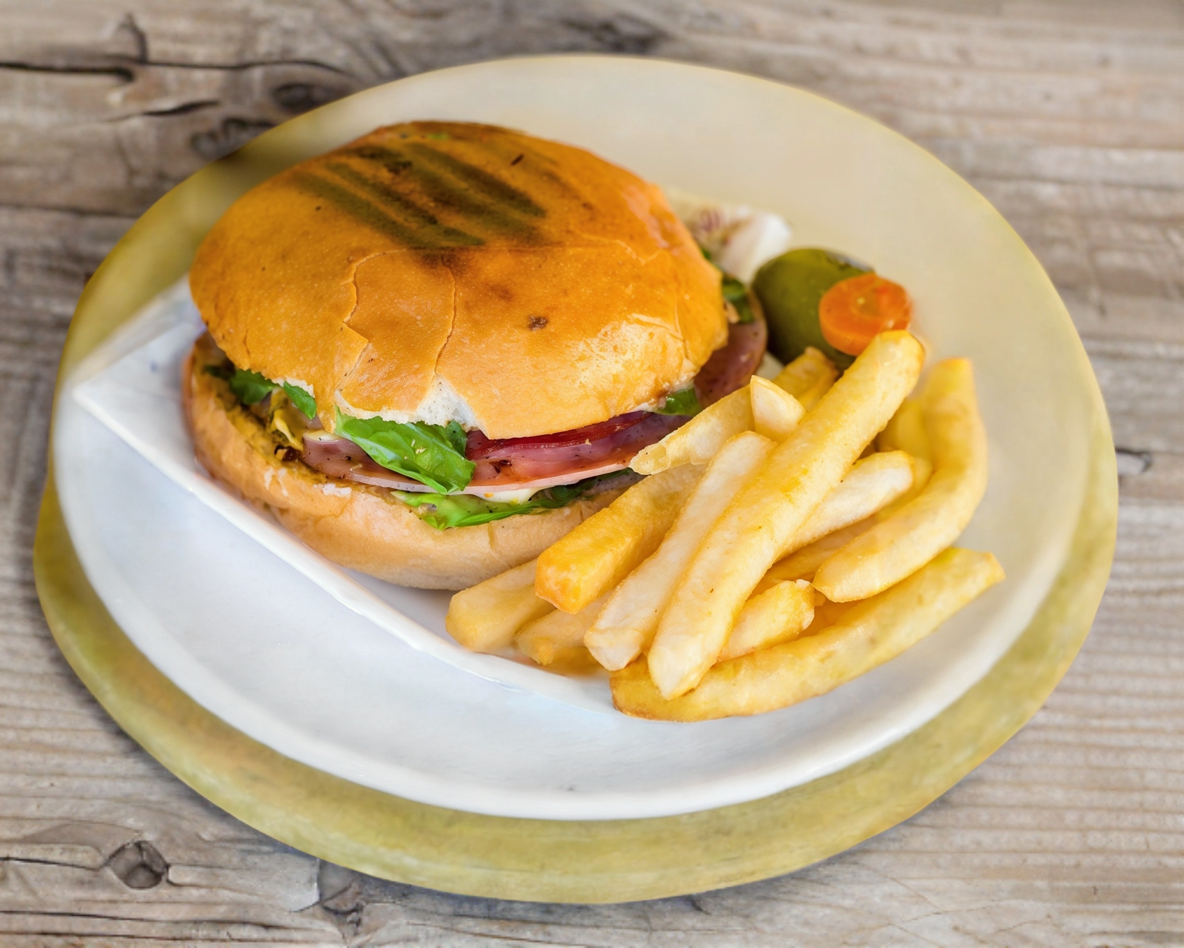 Incluye: papas a la francesa, jamón, salami, tomate y lechuga.