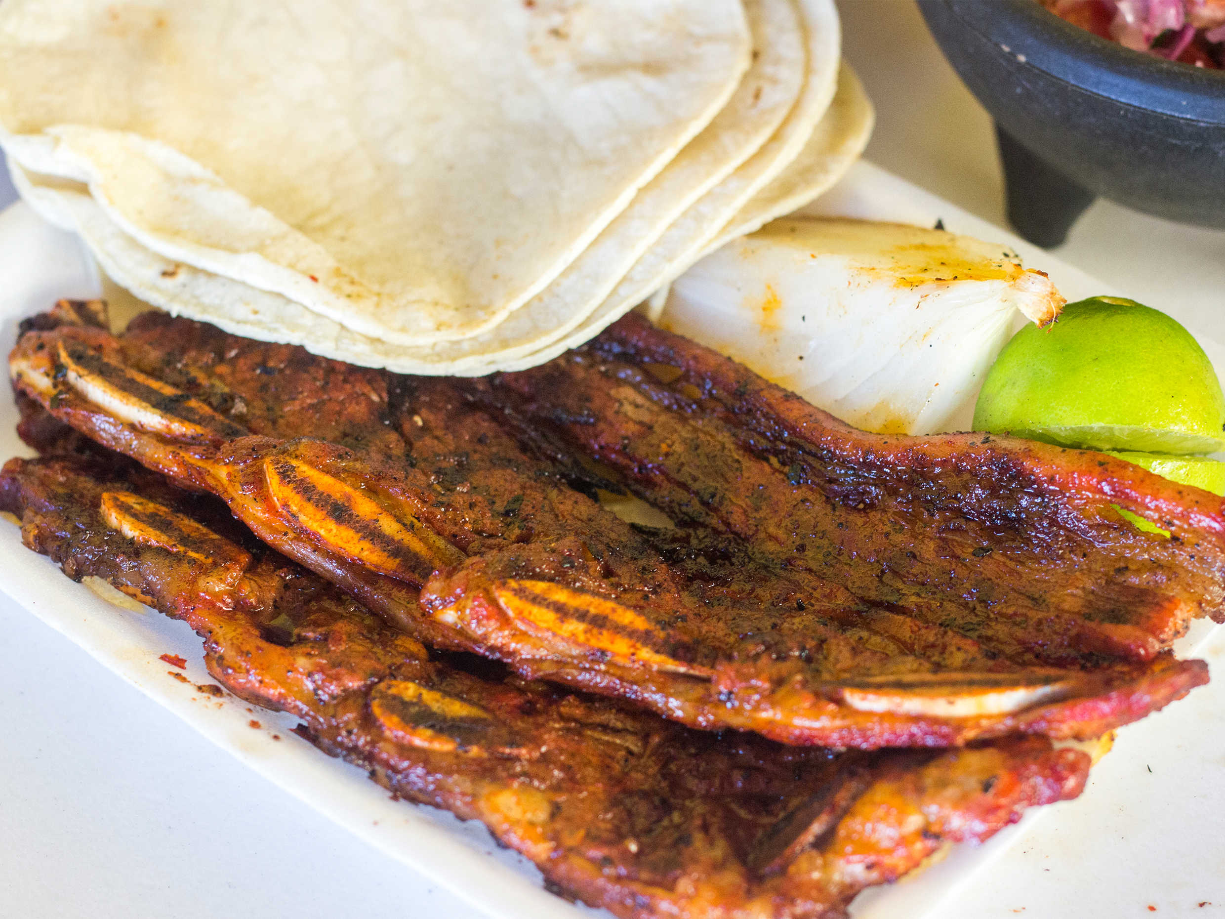 Incluye: costilla simple de res adobada, cebolla asada, pico gallo, limon,tortillas , salsa roja molcajeteada y salsa verde cremosa.