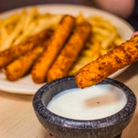 5 PIEZAS DE DEDOS DE QUESO PORCION DE PAPAS Y ADEEREZO