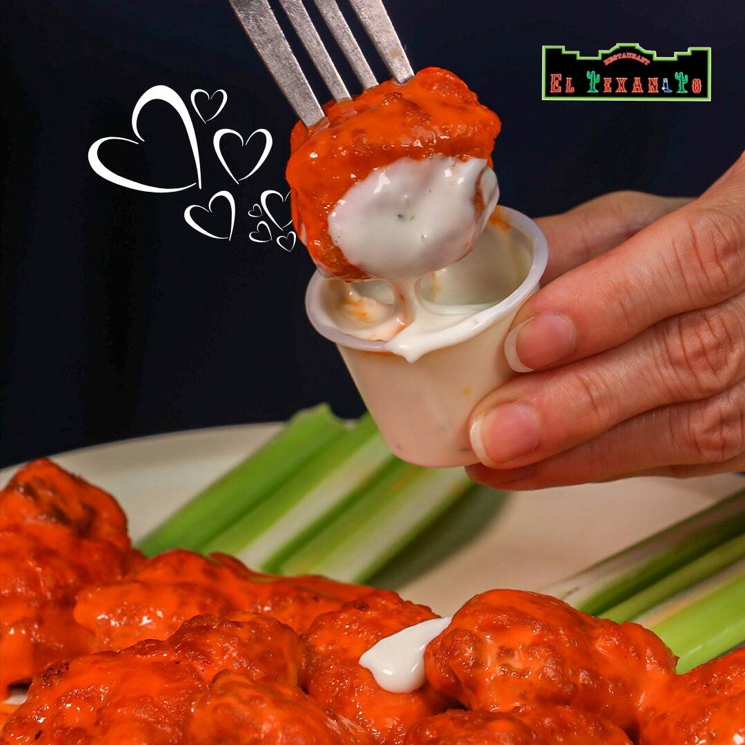 5 PIEZAS DE ALITAS DE POLLO , PORCION DE APIO YSALSA HOT Y ADEREZO