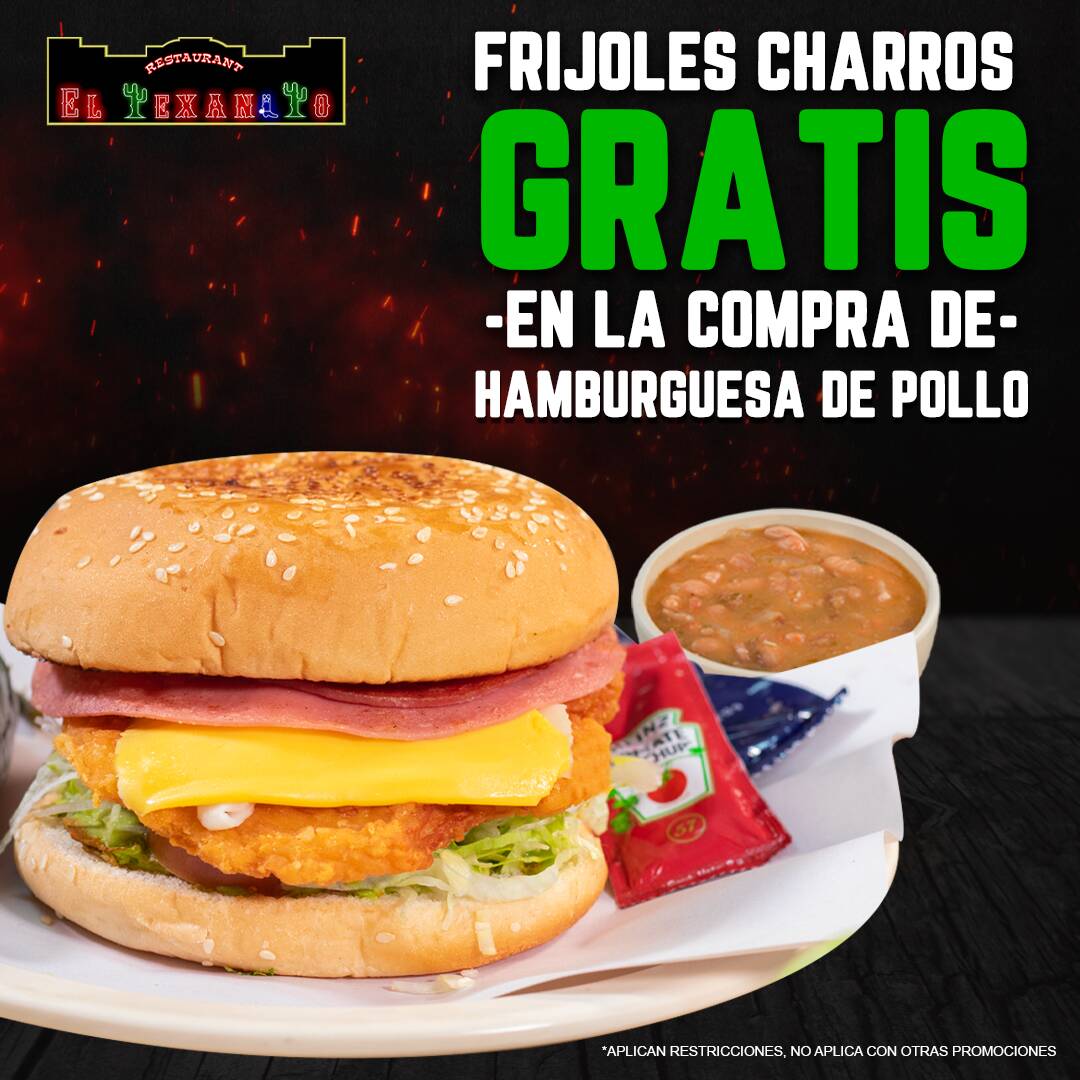 Promo-Hamburguesa de Pollo+Frijoles Charros Gratis