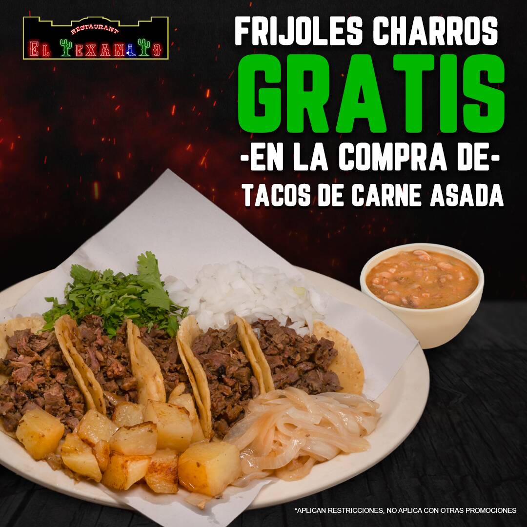 Promo-Tacos de Carne Asada+Frijoles Charros Gratis