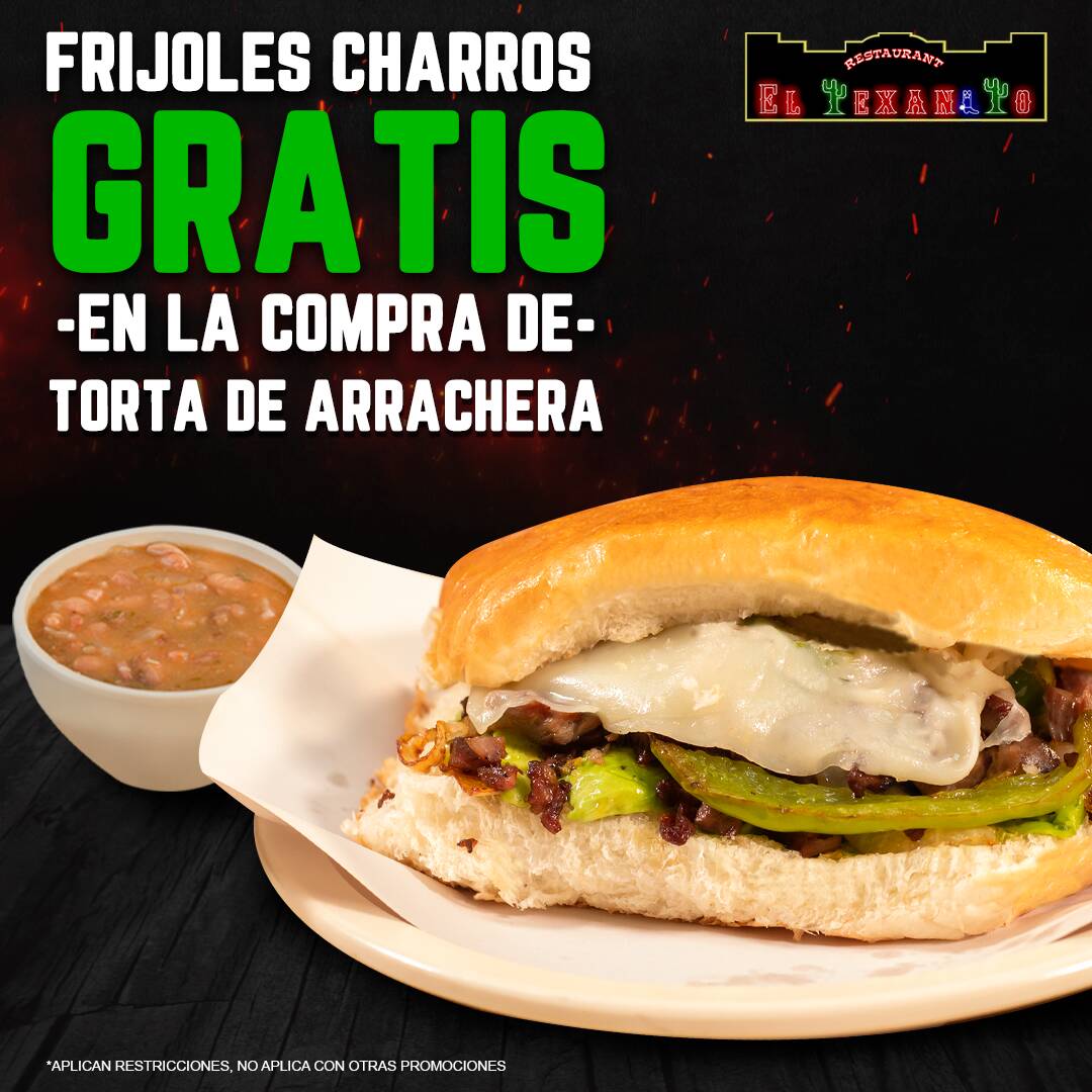 Promo-Torta de Arrachera + Frijoles Charros Gratis
