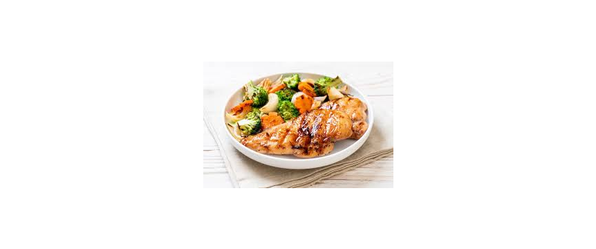 Pechuga de Pollo con Verduras al vapor, Queso gratinado amarillo