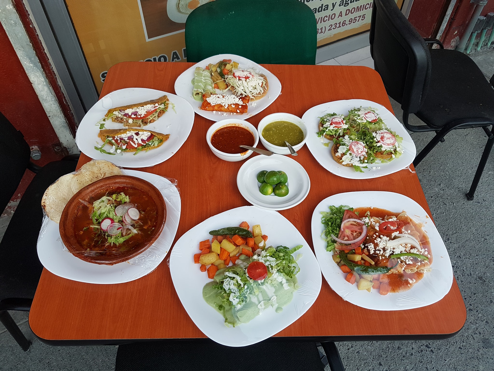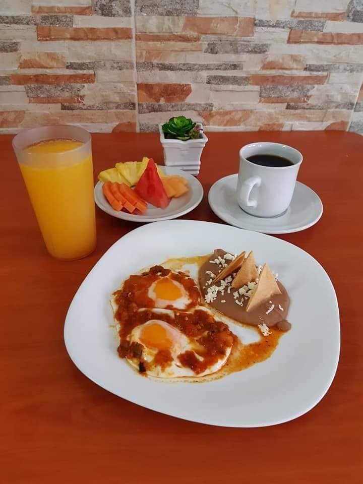 Acompañada de entrada del día, agua de frutas frescas, tortillas, salsa.