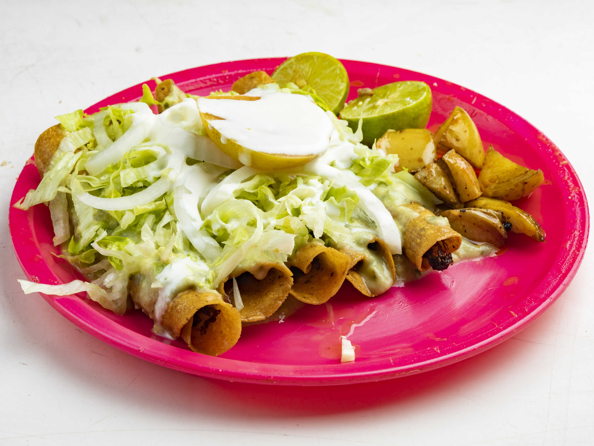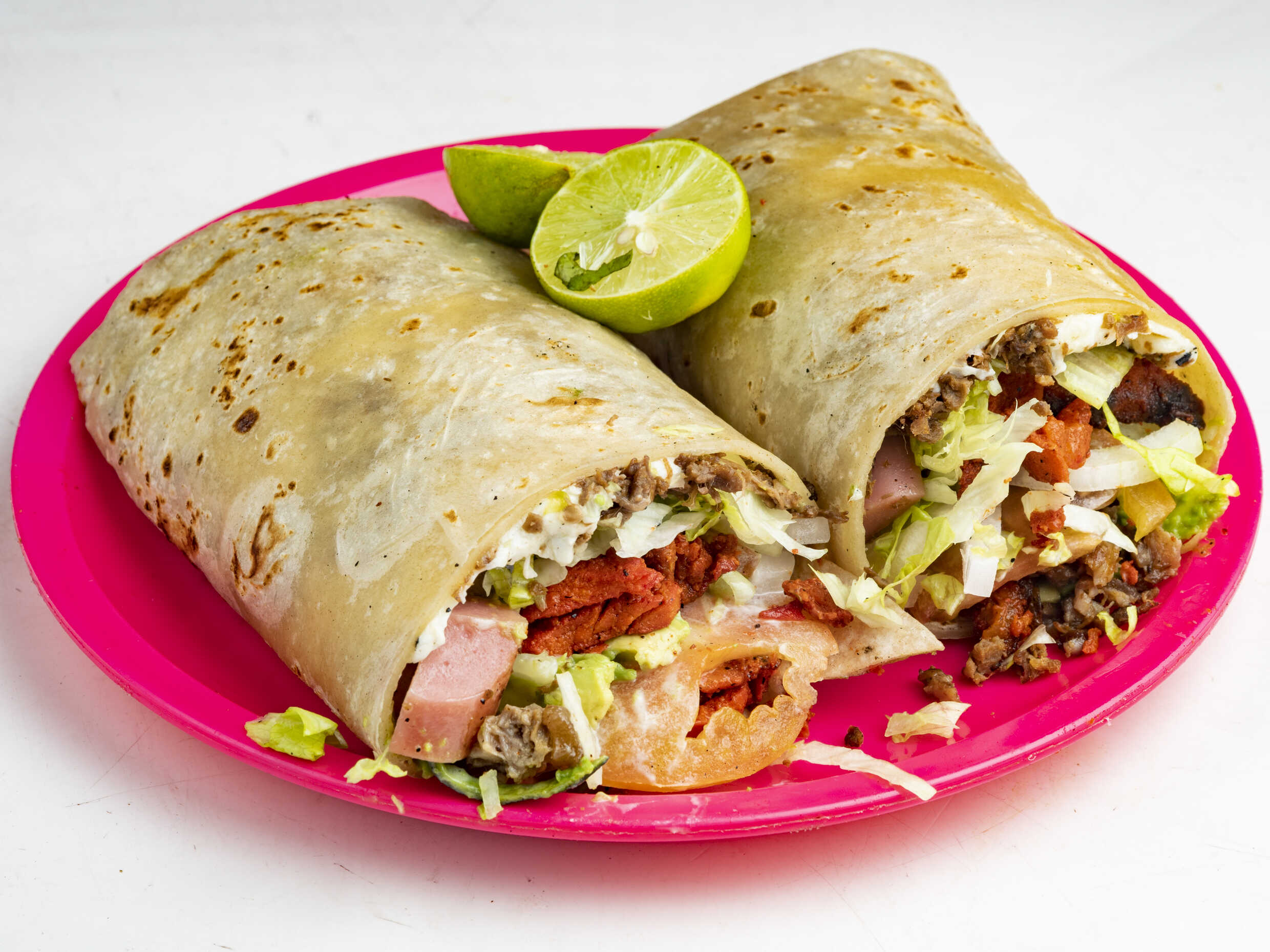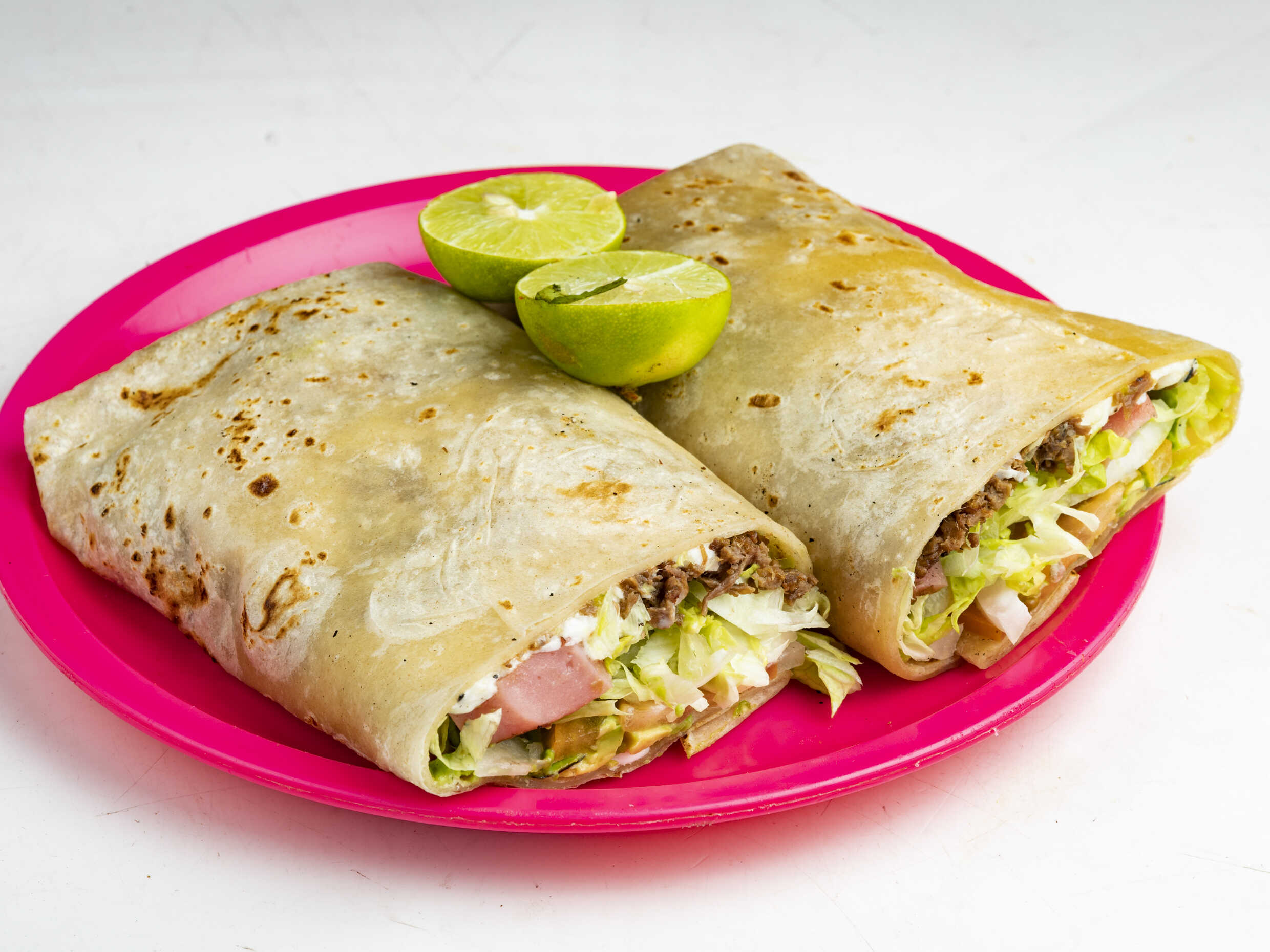 De deshebrada, incluye lechuga, tomate, cebolla, aguacate y crema.