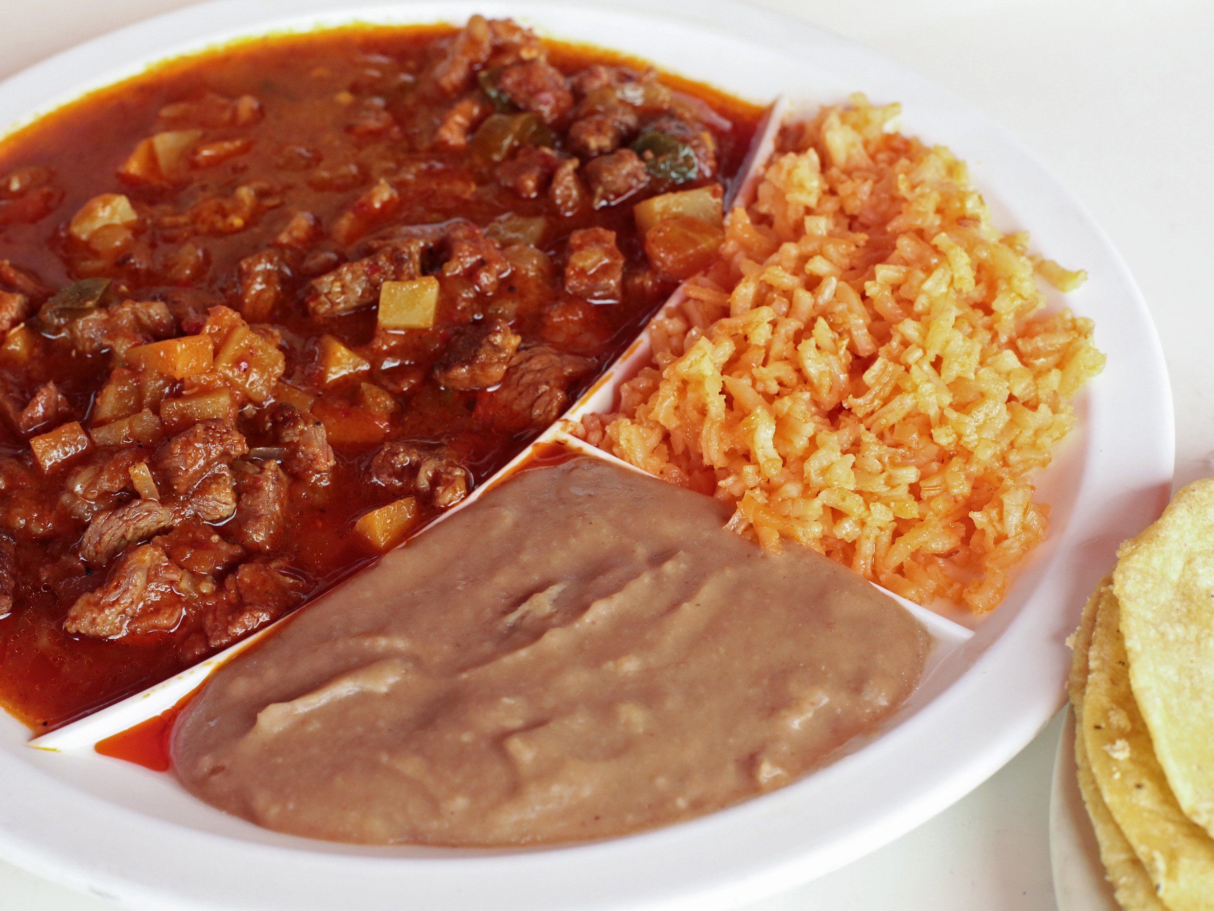 5 Tacos de harina de guisados: chicharrón, picadillo, deshebrada, Cortadillo, asado.
