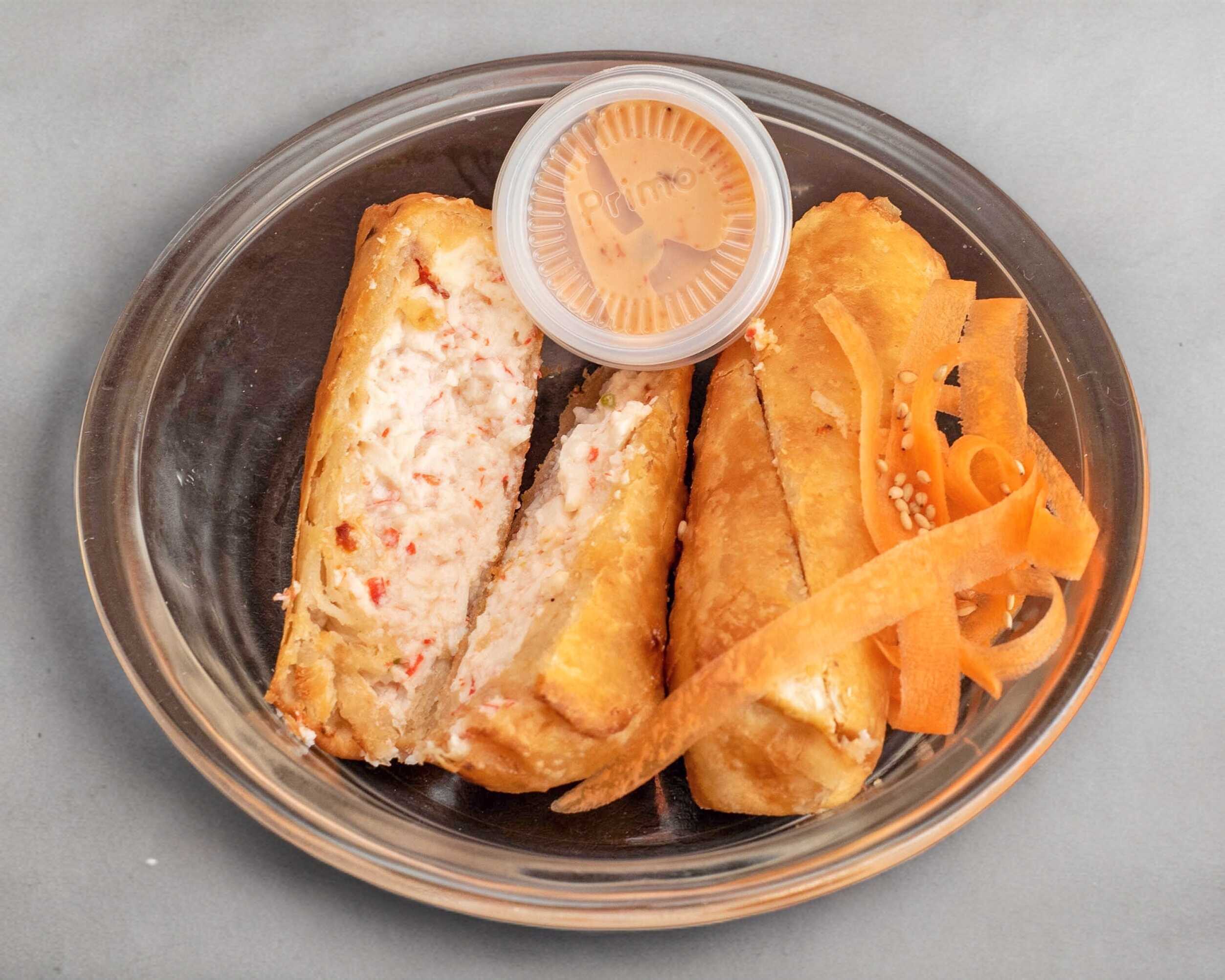2 Egg roll rellenos de tampico, queso crema y chipotle.