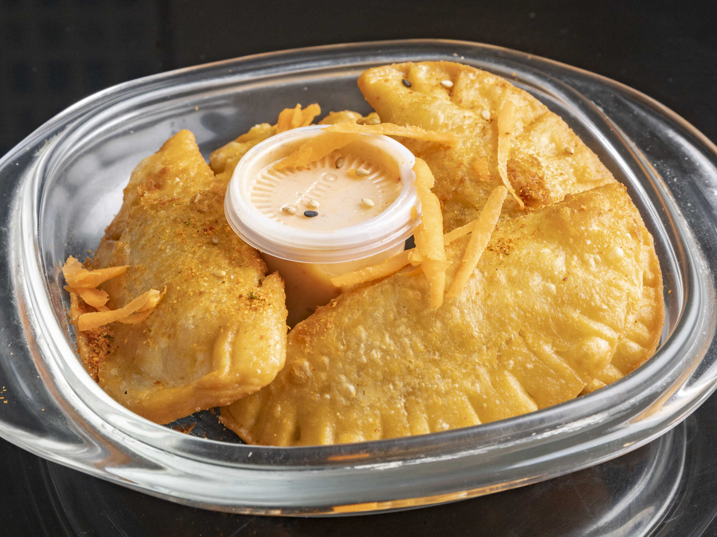 4 Empanadas japonesas rellenas de carne de res y verduras.