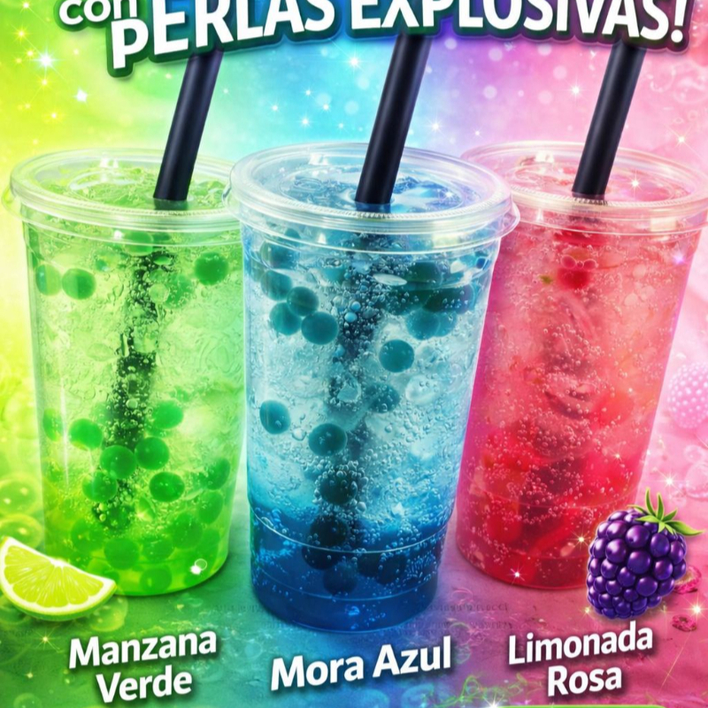 manzana verde, mora azul, limonada rosa, piña colada