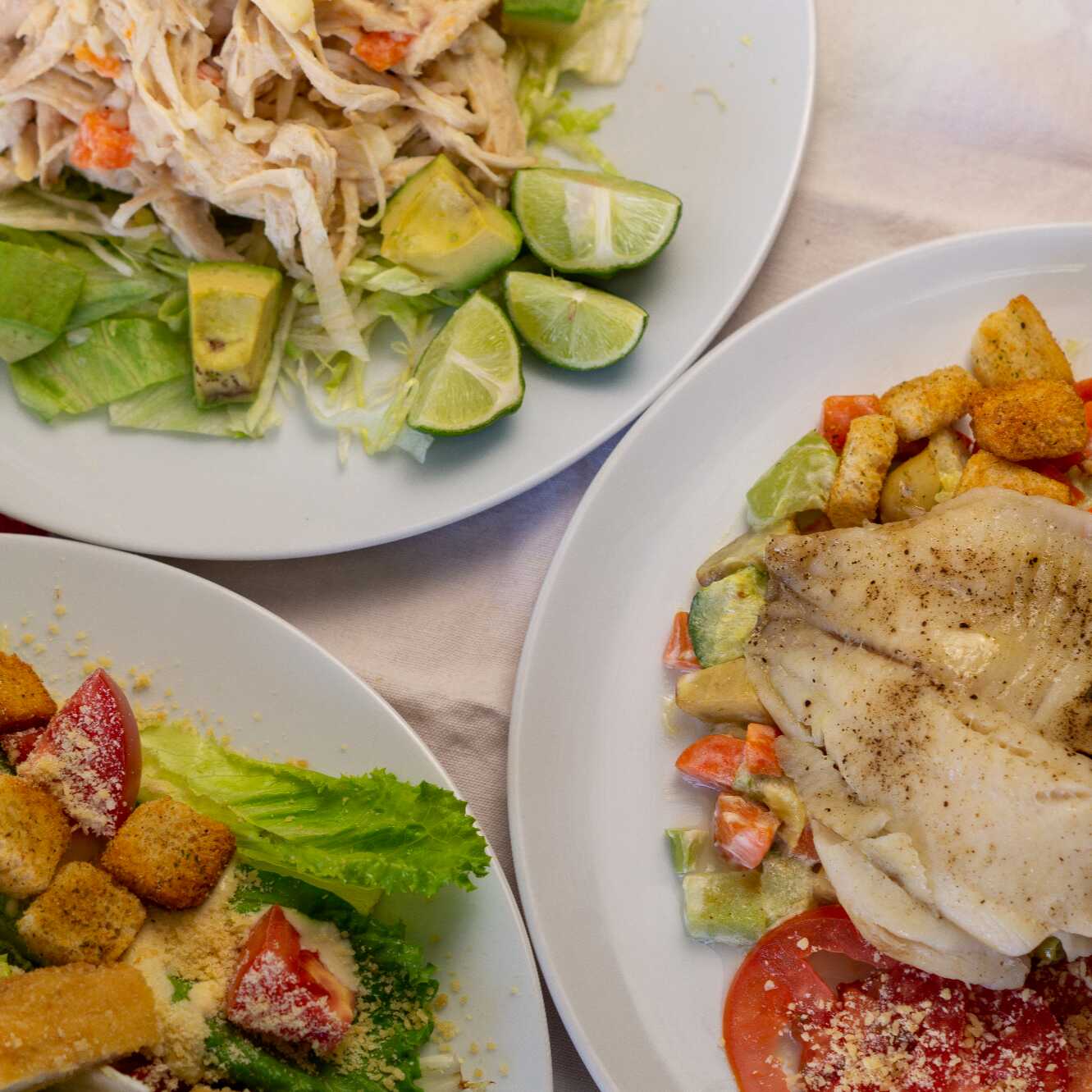 rica combinacion de lechuga larga aderezada con su aderezo acompañada de queso parmesano , crutones de pan tostado , jitomate