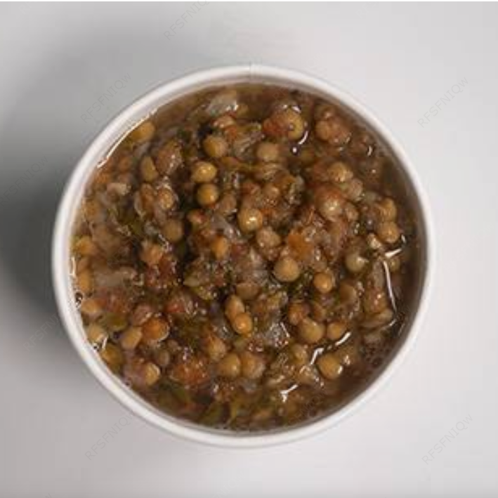 Delicioso caldito de lentejas con piquito de gallo.