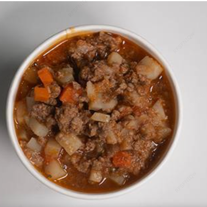 Delicioso picadillo con papa y zanahoria guisado en salsa de tomate.