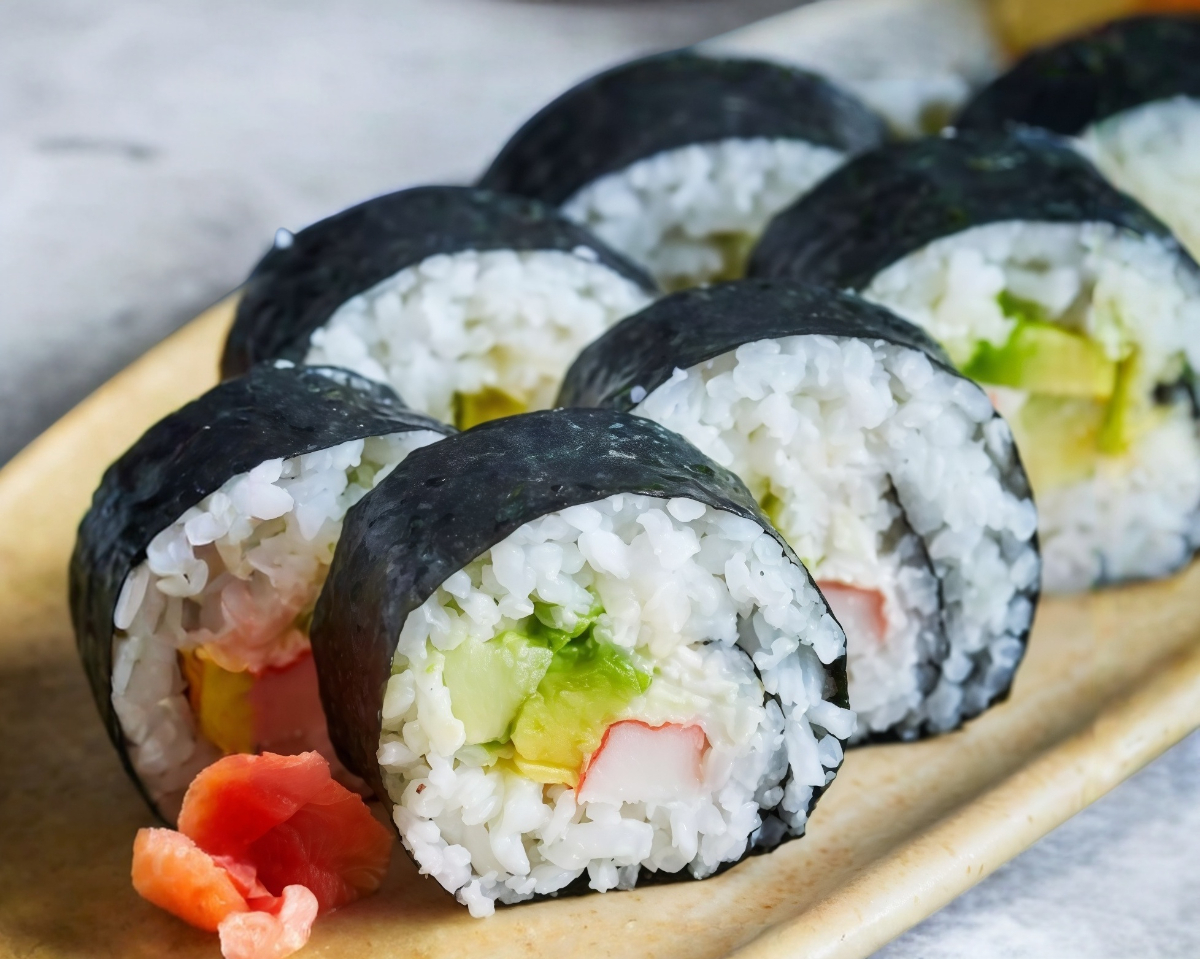 Sushi de surimi, Aguacate, Pepino y queso crema.