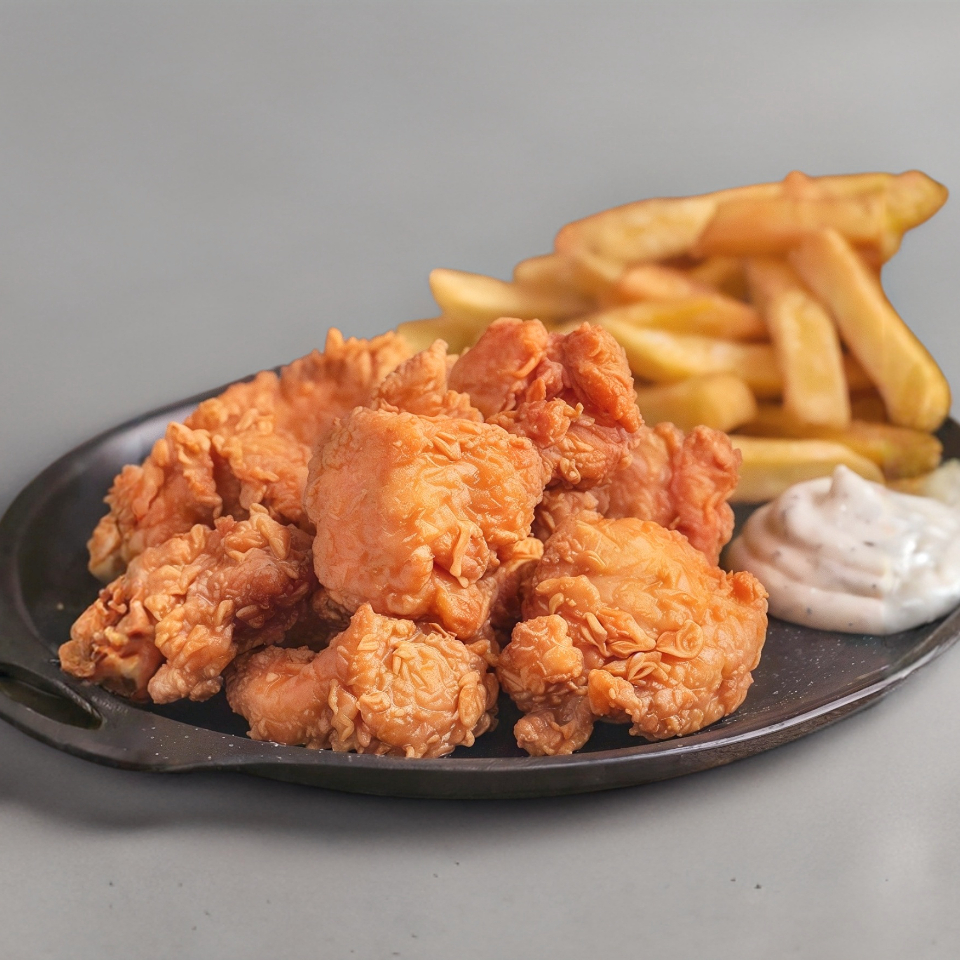 200g de Boneless en salsa BBQ acompañados de Papas a la francesa