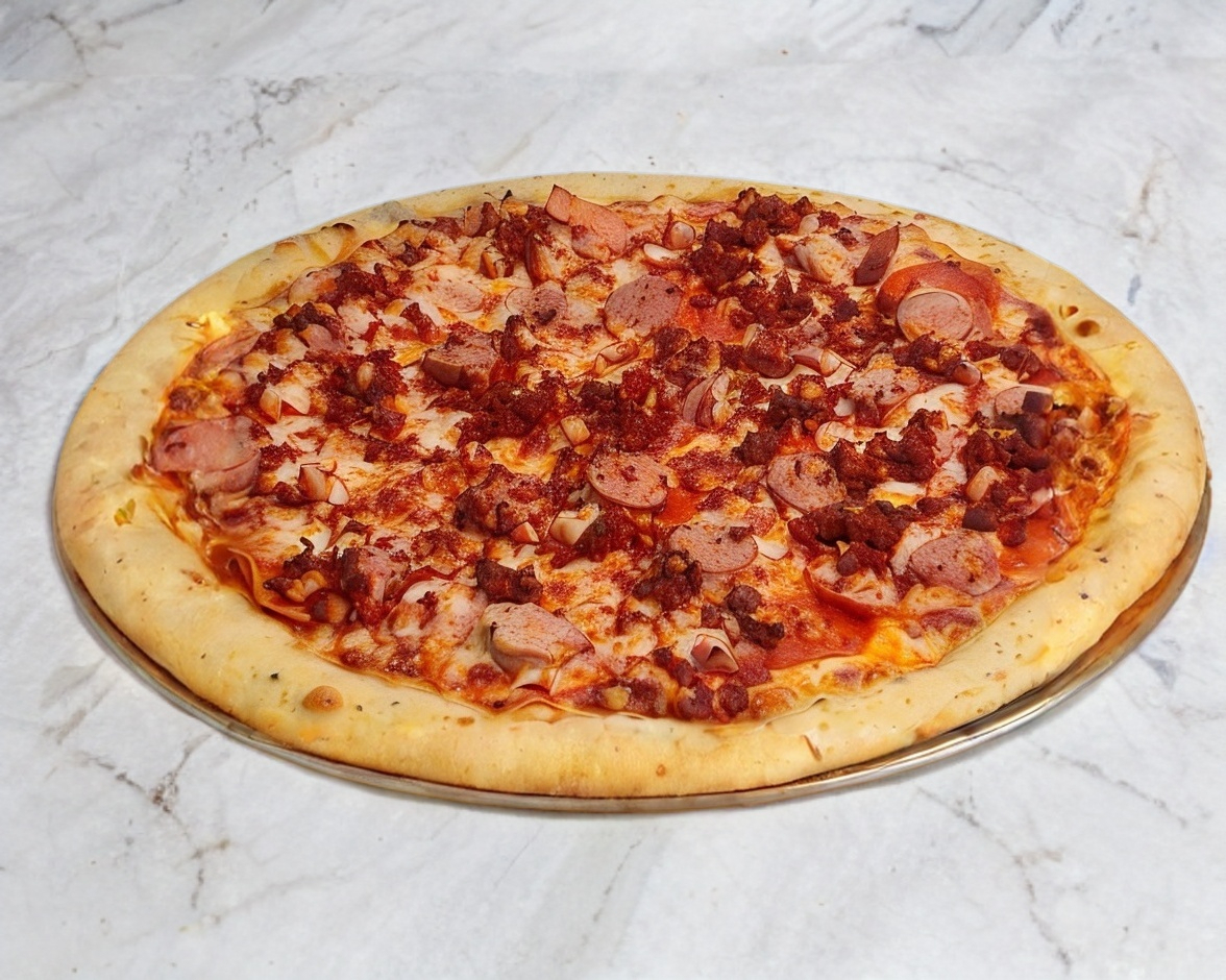 pizza grande de 14 pulgadas de pepperini, chorizo,tocino y salchicha italiana