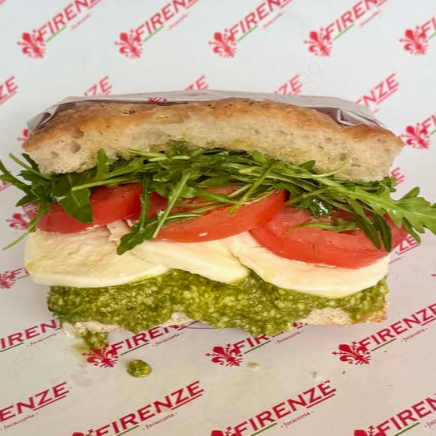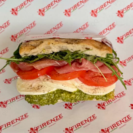 Prosciutto, mozzarella fresca, tomate fresco, arúgula, pesto, aceite de oliva, sal y pimienta.