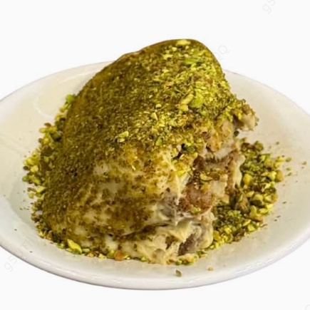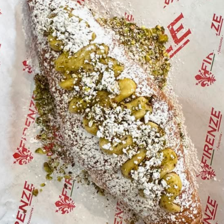 Pan hecho en casa relleno de mezcla de pistache y mascarpone.