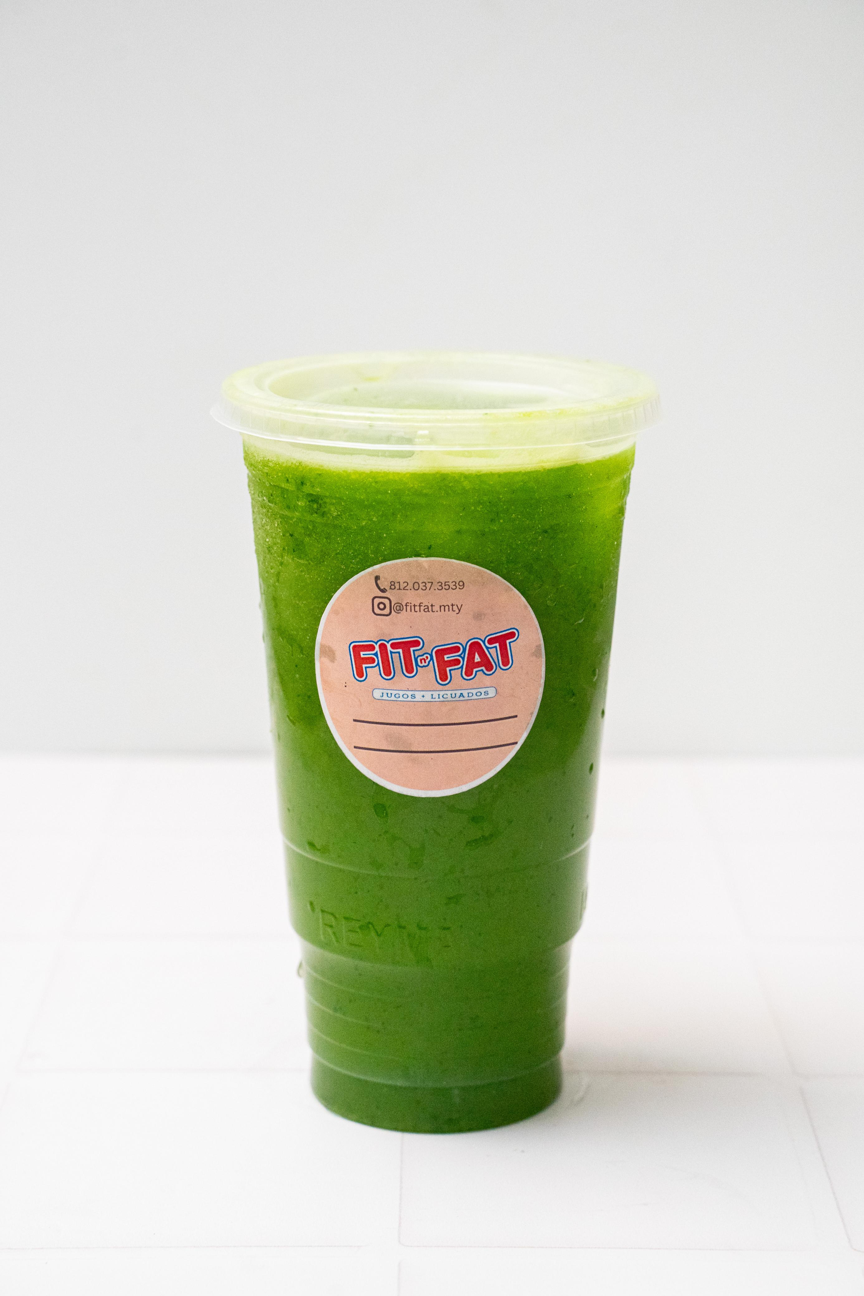 Espinacas, apio, piña, nopal y jugo de naranja.