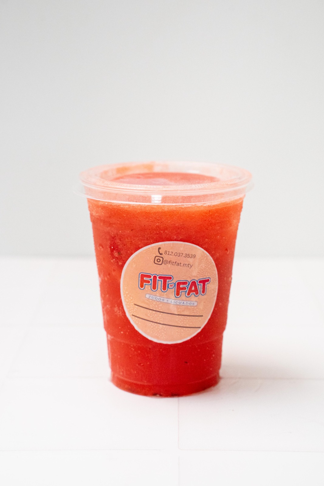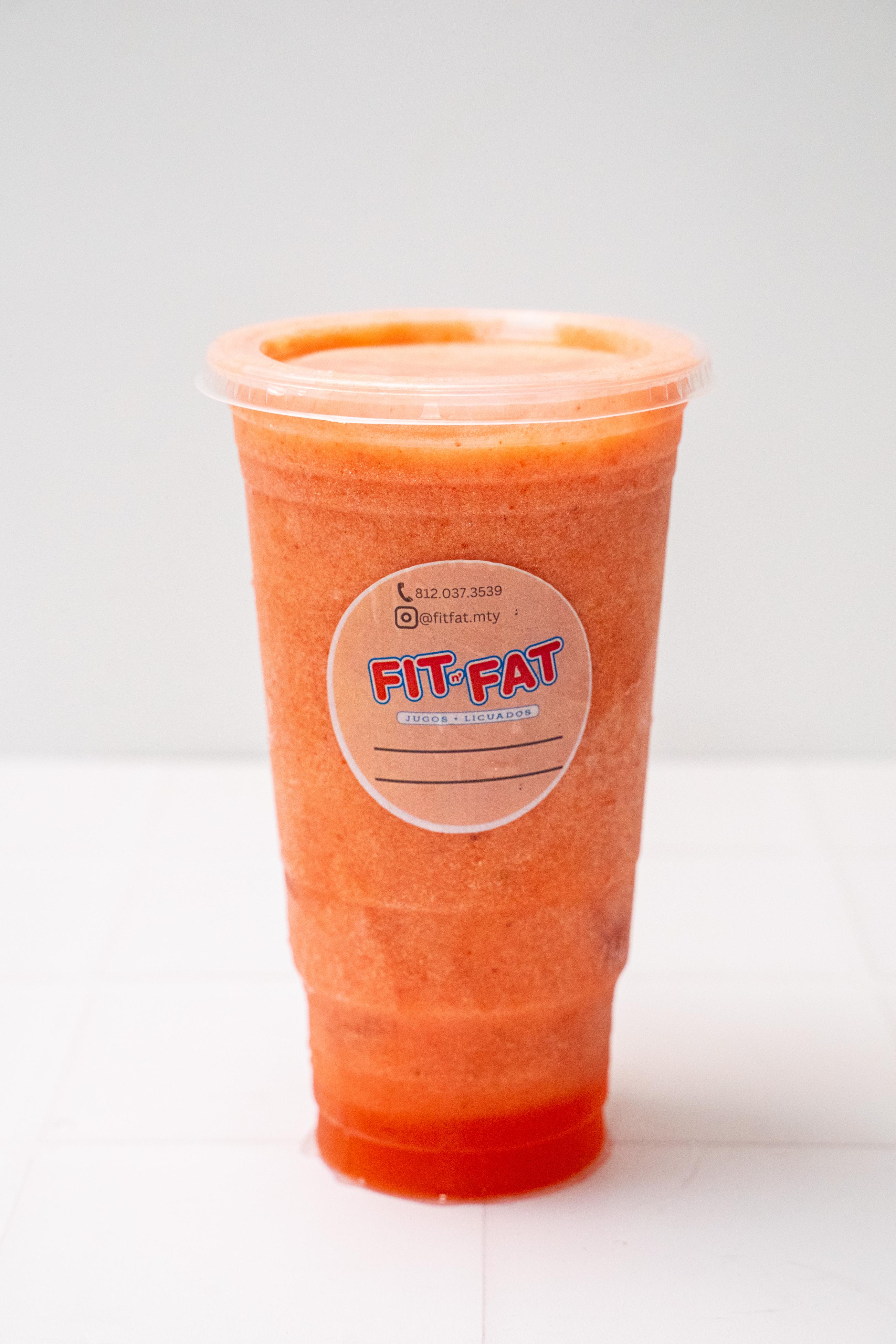 Agua de mango con fresas, fruta 100% natural preparada al momento.