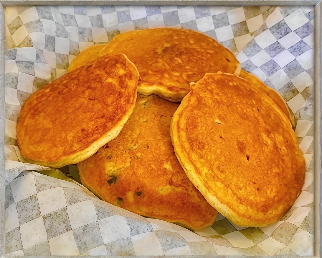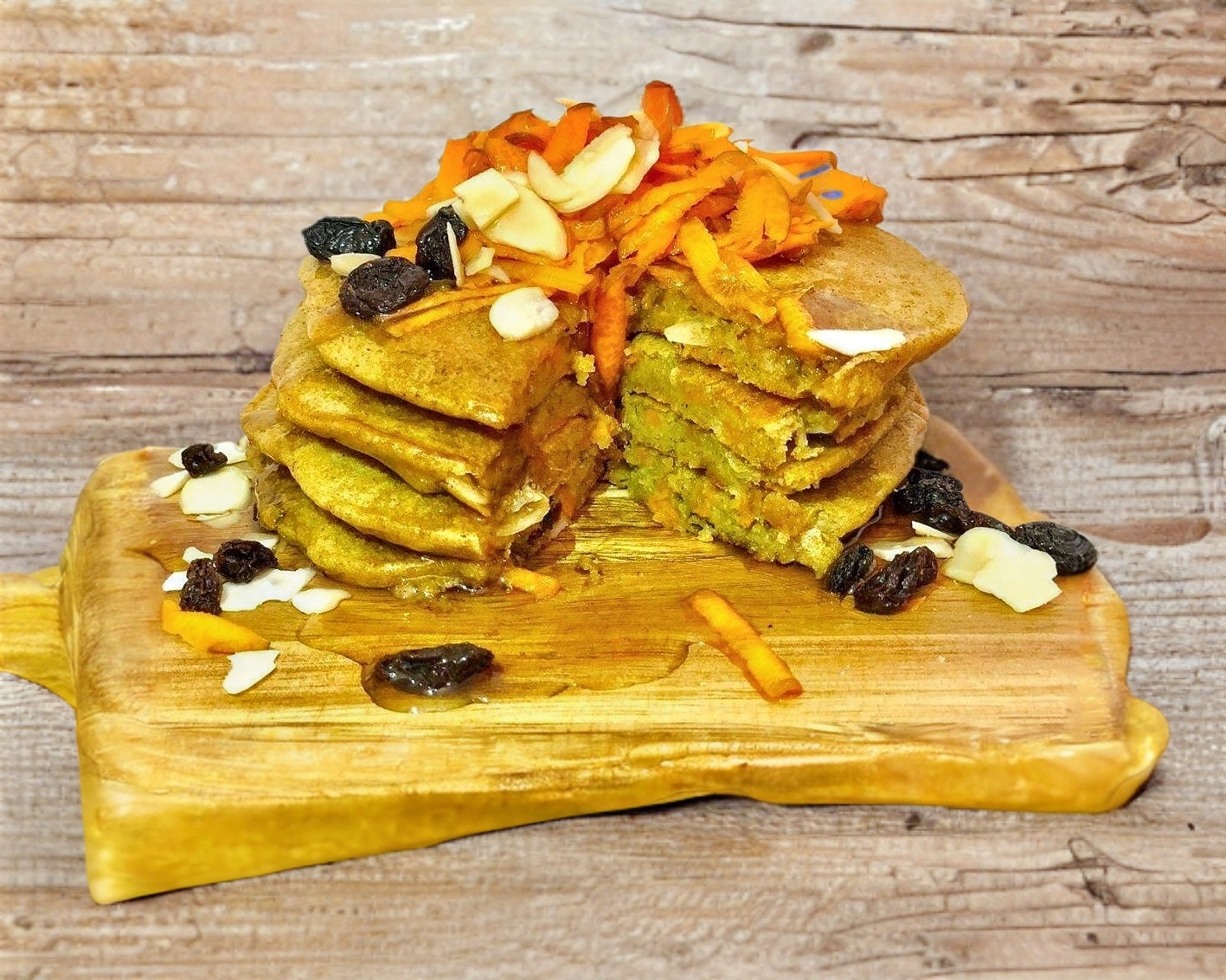 4 pancakes de zanahoria, con pasas, almendras y canela.