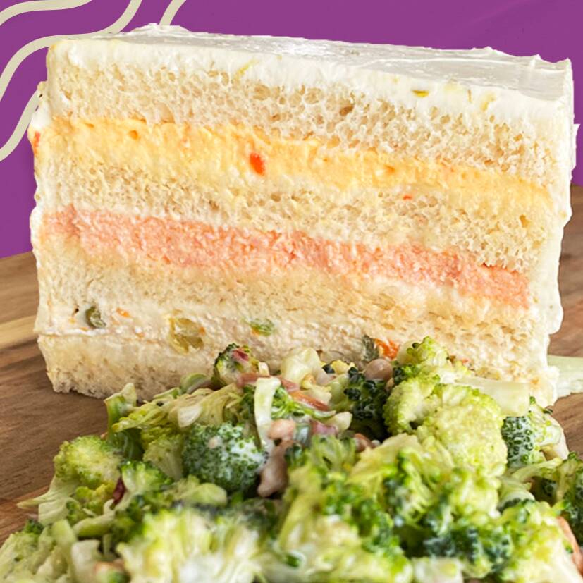 Platillo con una porción personal de sandwichón con relleno de ensalada de pechuga de pollo, jamón de pierna preparado y mezcla especial de queso cheddar y betún de Queso Philadephia preparado acompañado de 2 porciones de ensalada a elegir.