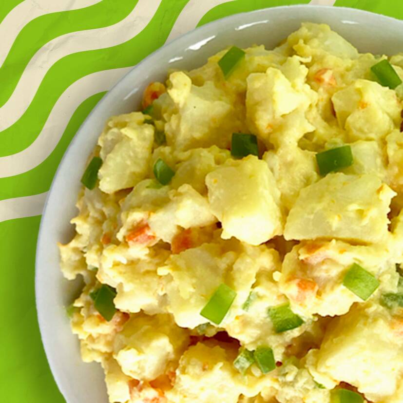 Ensalada de papa con zanahoria, pimiento morrón verde y un toque de huevo cocido con aderezo cremoso especial de la casa