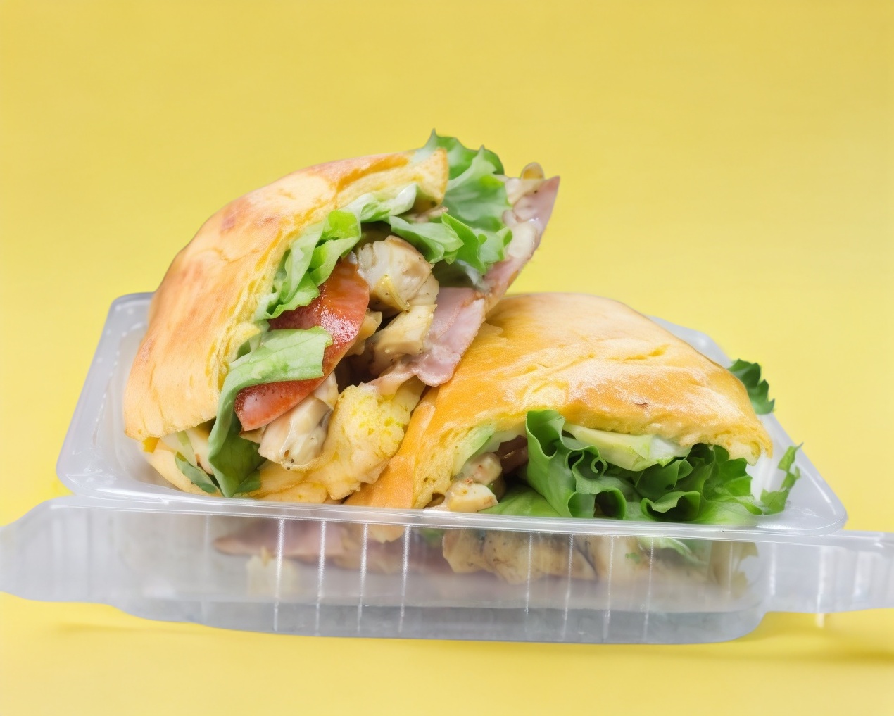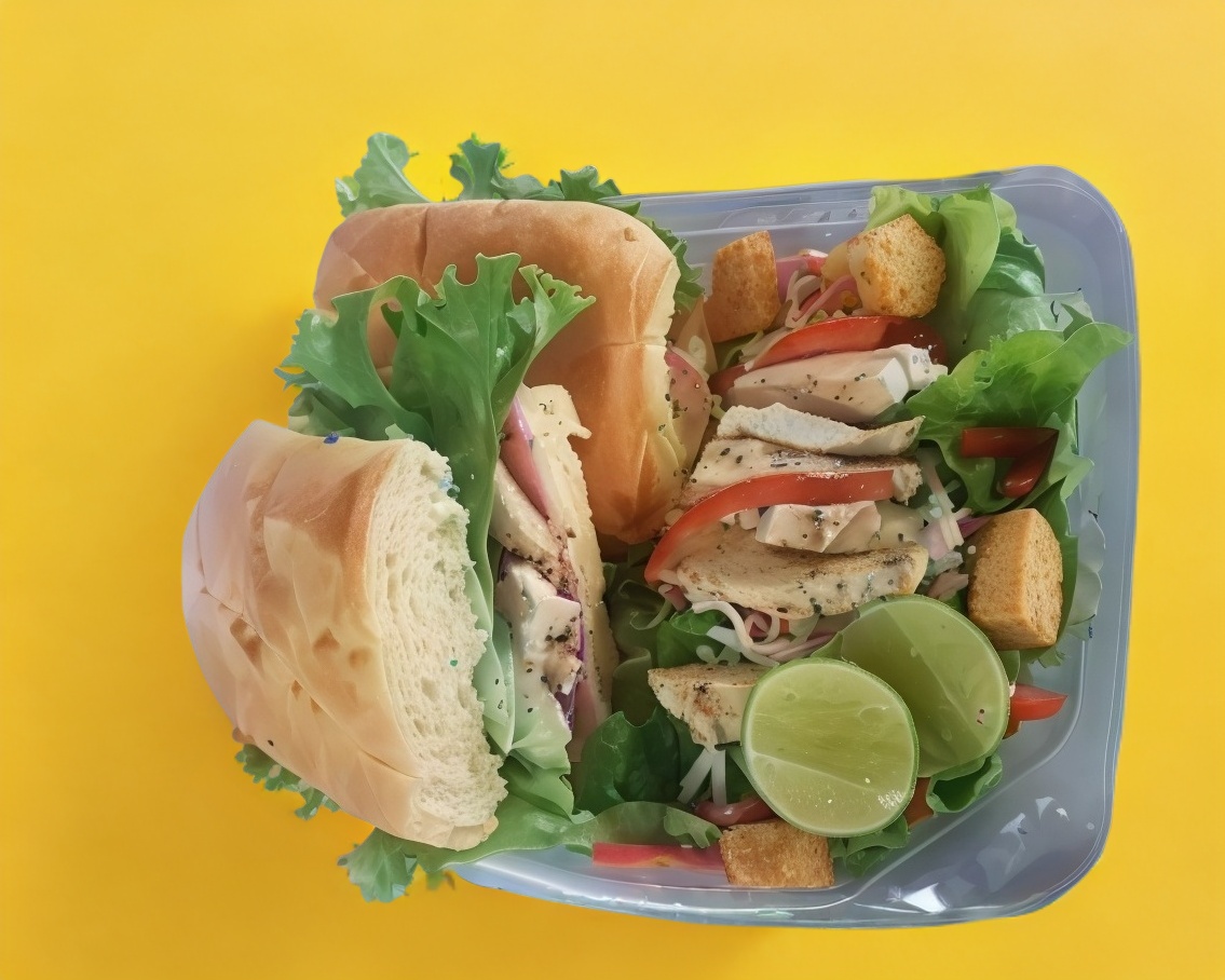 Pan integral, lechuga, tomate y ensalada de pollo.