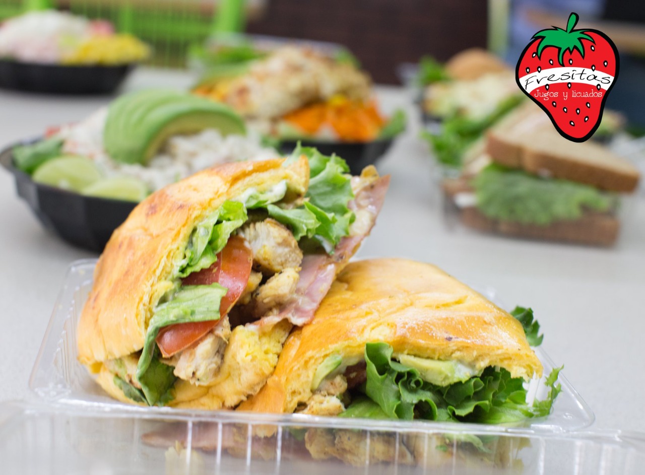 Pan integral, jamón de pavo, queso panela, queso amarillo, lechuga y tomate.