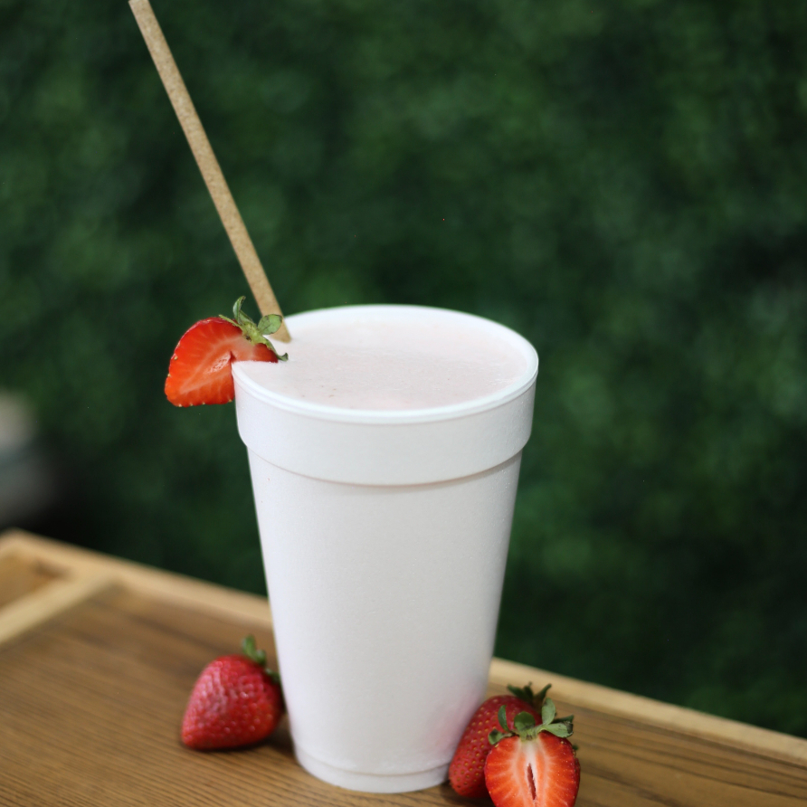 Fresas, endulzante (azúcar, stevia o miel) y leche (entera o deslactosada) con un costo adicional puedes cambiar la leche a (almendras o coco).