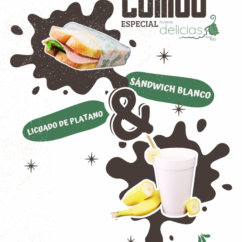Licuado de Plátano 500ml*1 + Sándwich Sencillo*1