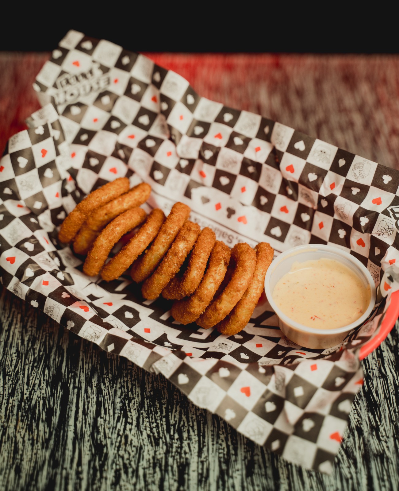 Aros de cebolla empanizados y acompañados de aderezo ranch chipotle.
