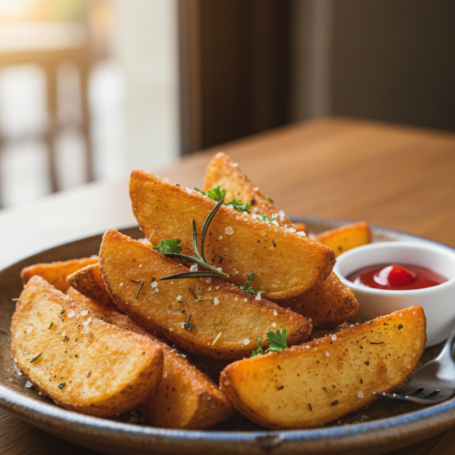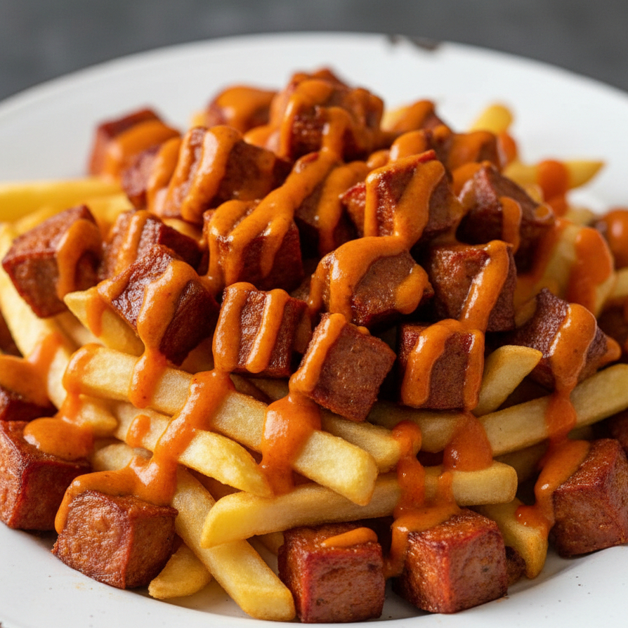 3 Ordenes individuales de papas y 3 ordenes individuales de salchichas en salsa.