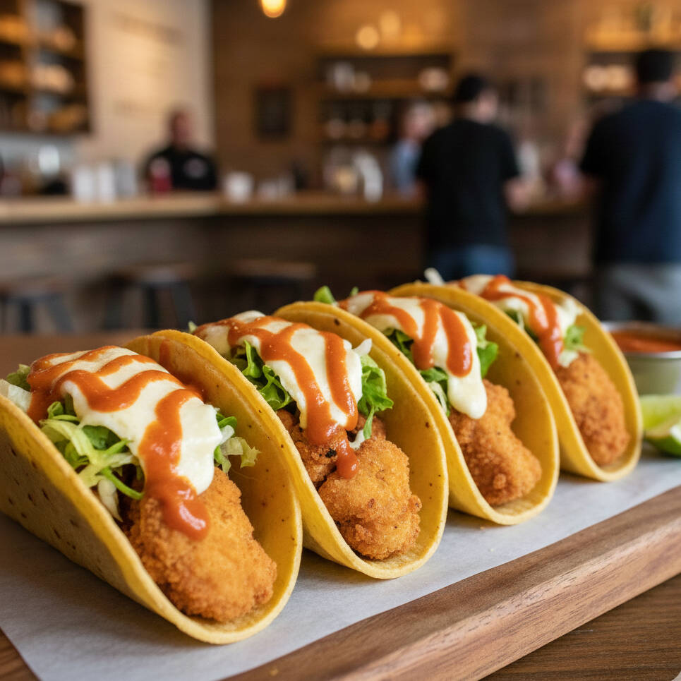 Orden de 5 tacos con bonleess con aderezo ranch lechuga y salsa original