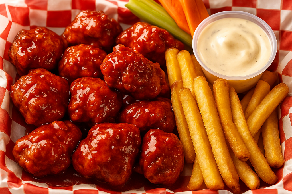 1 KG de boneless 100% de pollo, con una porción de papas.