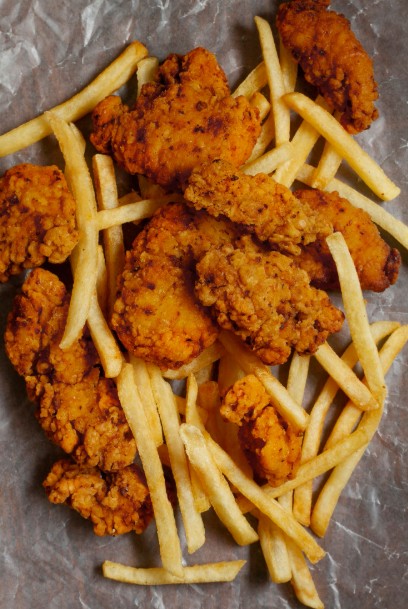 500 gr de boneless 100% de pollo, con una porción de papas.