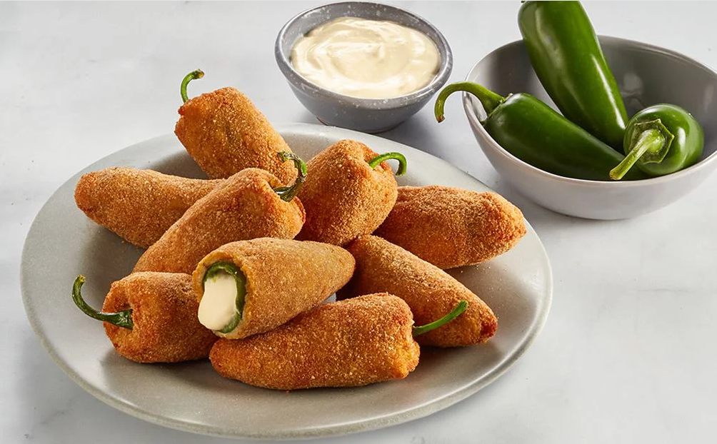 5 piezas de jalapeños empanizados y rellenos de philadelphia