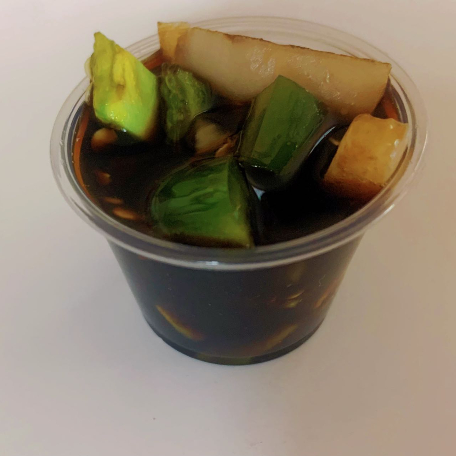 Jalapeños y cebollas con salsa de soya