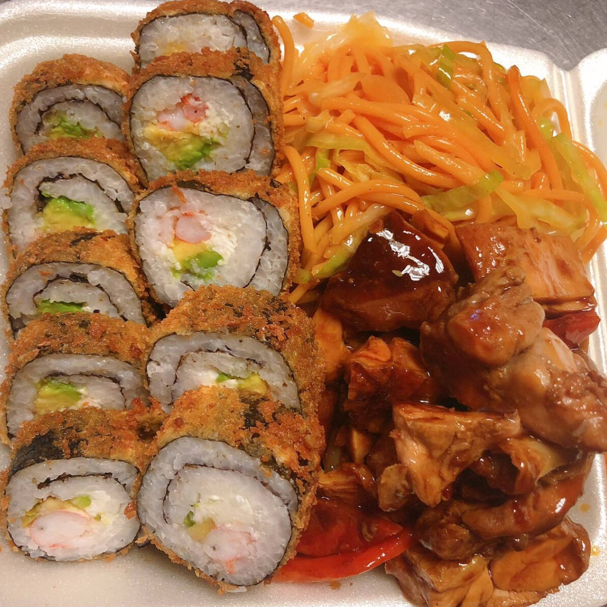 Sushi Empanizado y 1 Guiso Camaron Arroz Mixto