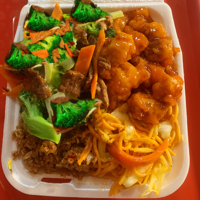 con 3 guisos a escoger,arroz ,pasta o mixto