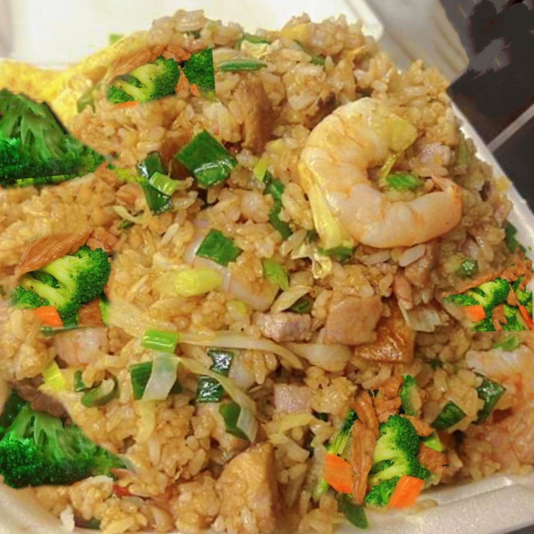 arroz frito con verduras,carne, pollo,camaron