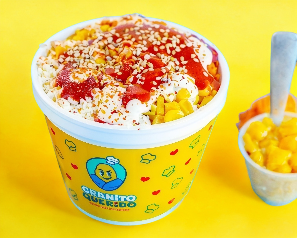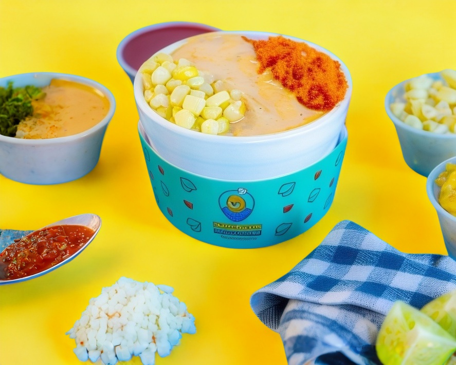 Tazón de 08 oz elote blanco o amarillo preparado con 3 aderezos. Además póngale sabor con nuestros complementos.