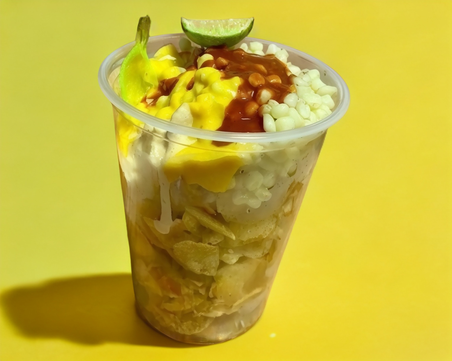 Vaso de 16 oz elote blanco o amarillo preparado con 3 aderezos. Además póngale sabor con nuestros complementos.