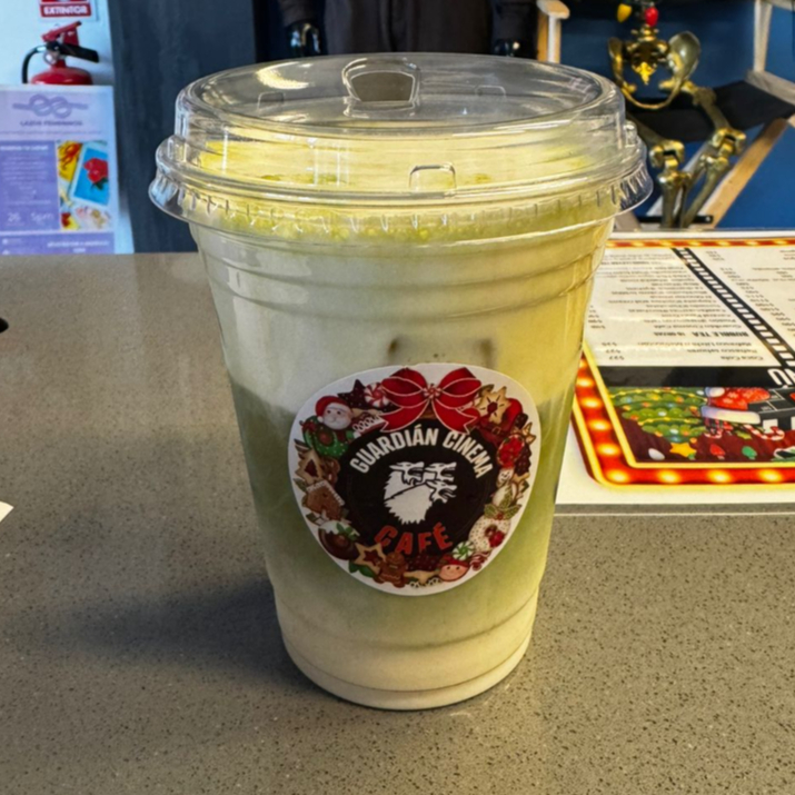 Matcha ceremonial, con la leche de tu preferencia, encima lleva un cold foam de pistache