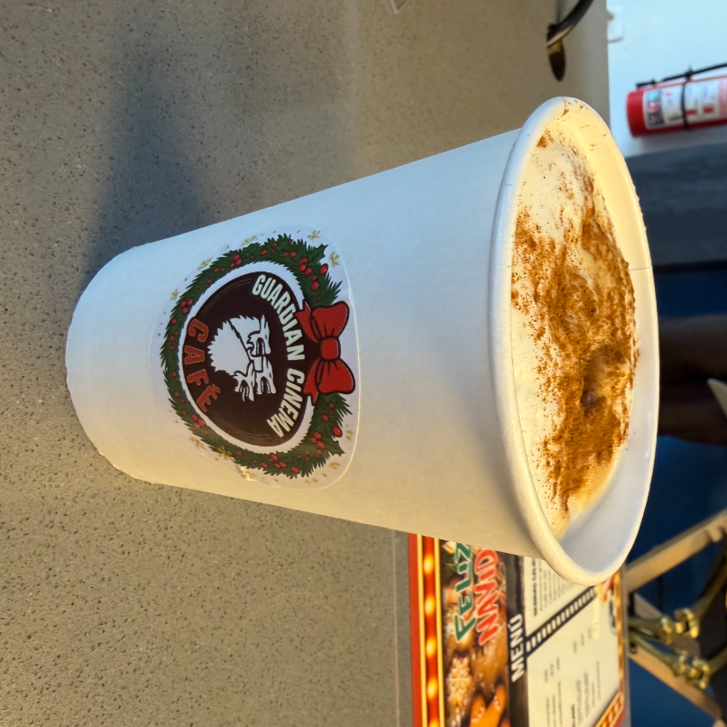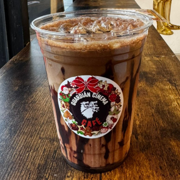 Latte red velvet, con un cold foam de malvavisco tostado y chispas de chocolate rojo